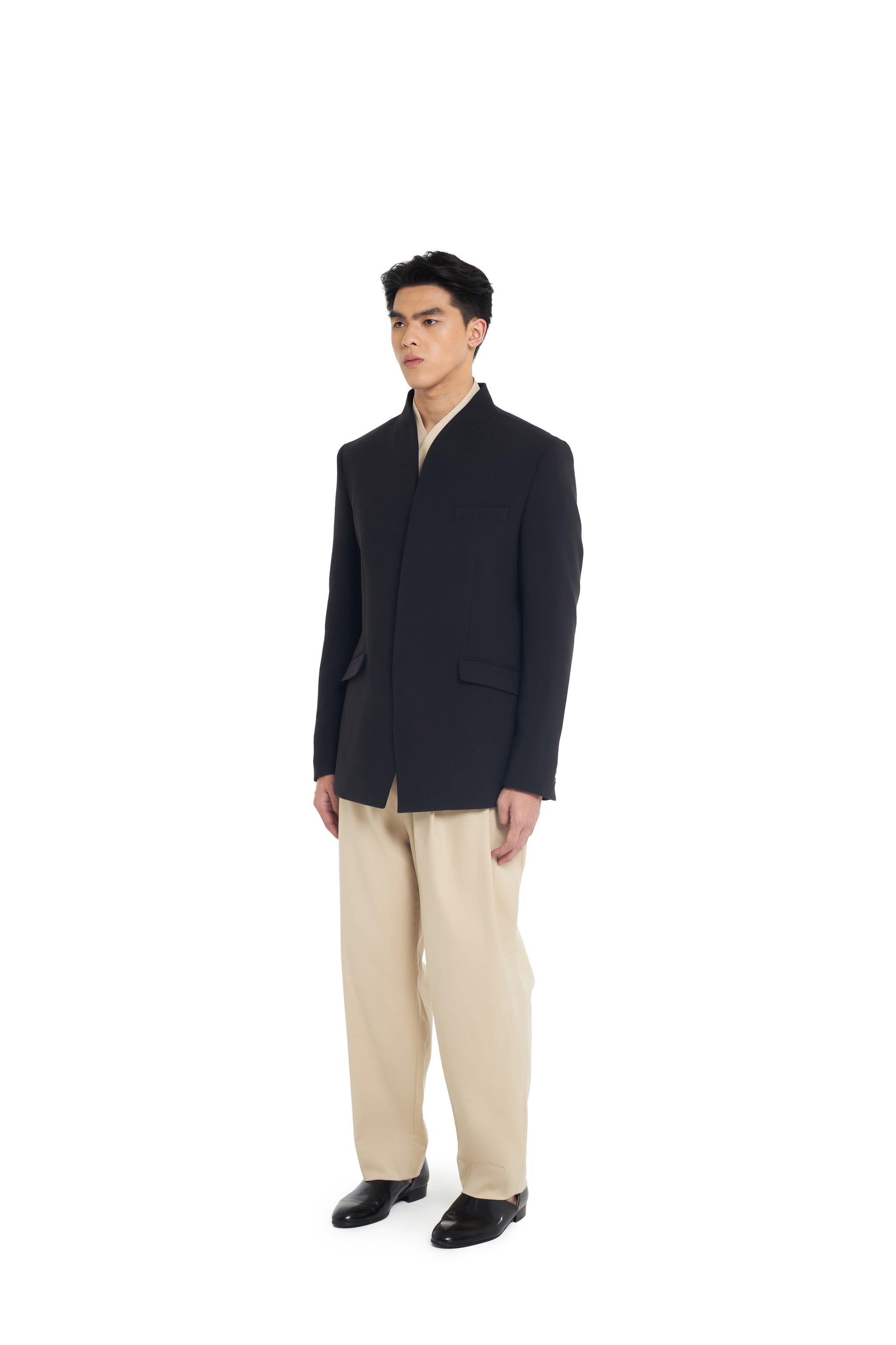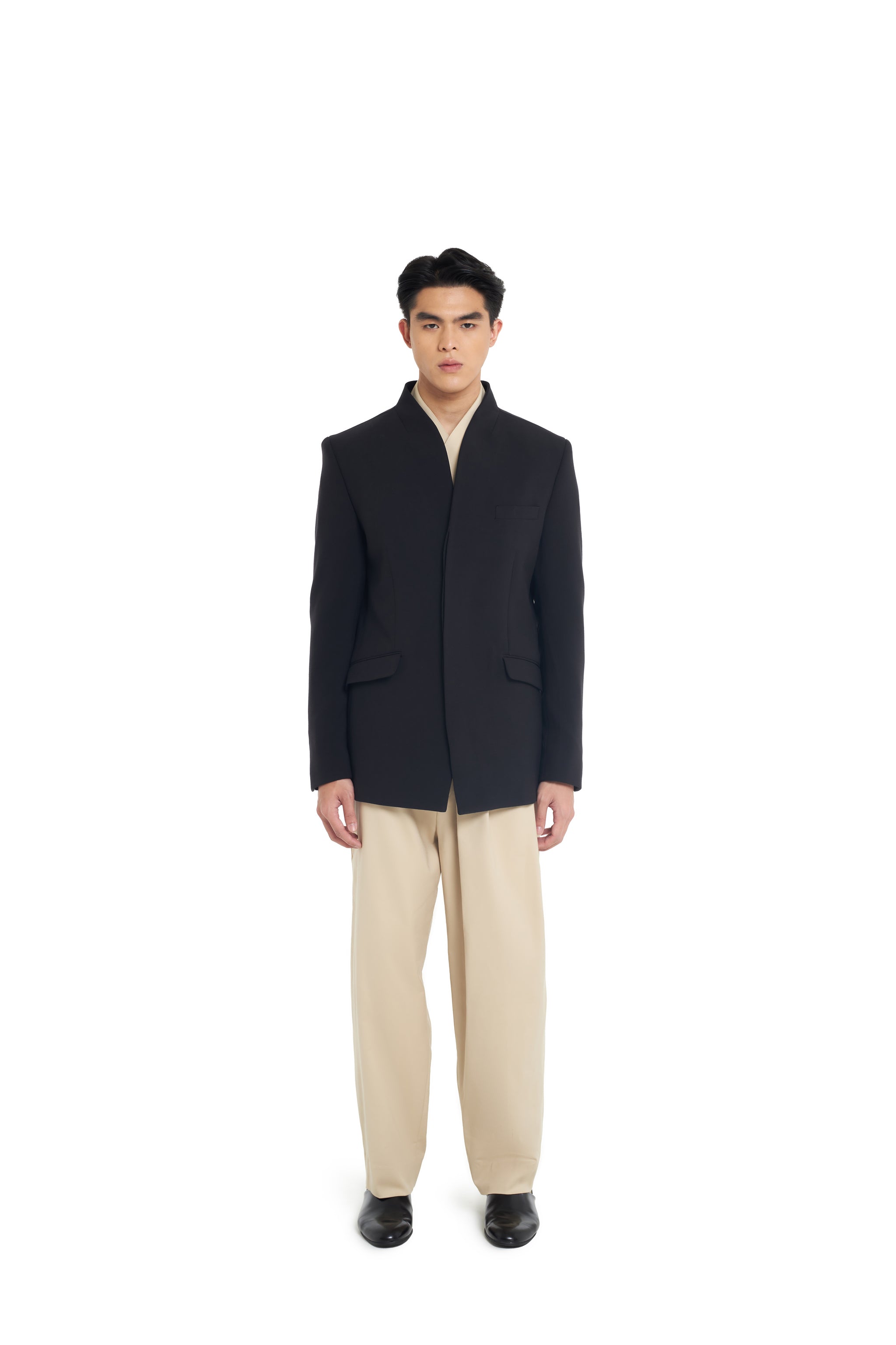 BLACK COLLARLESS BLAZER