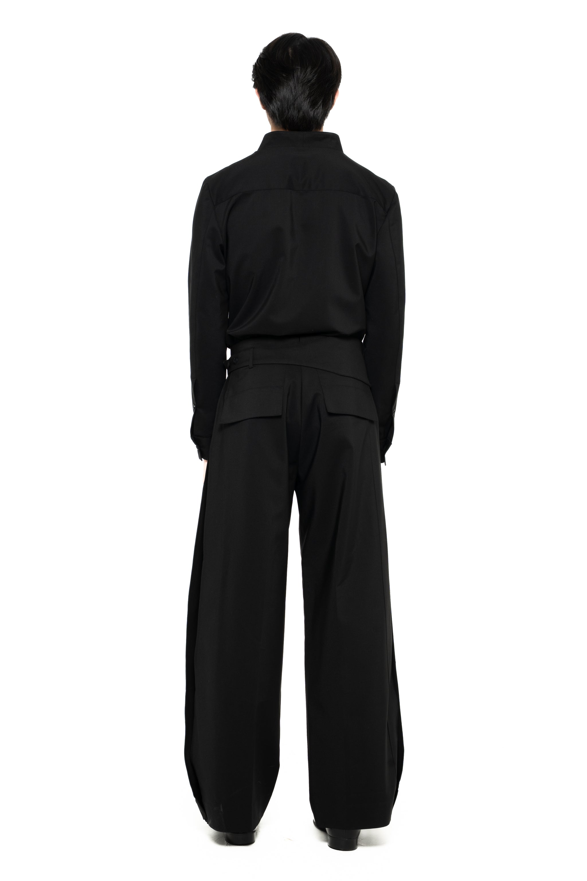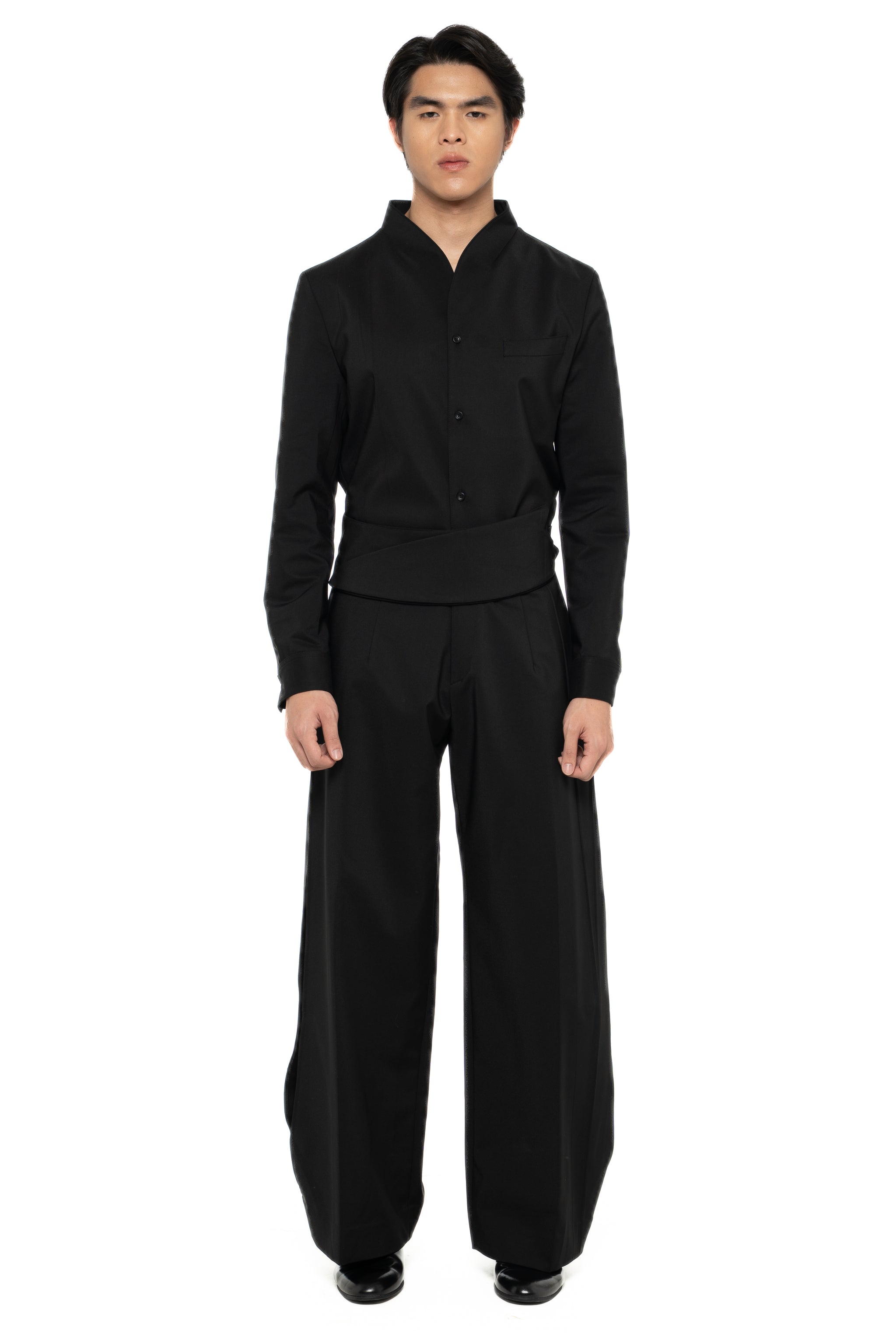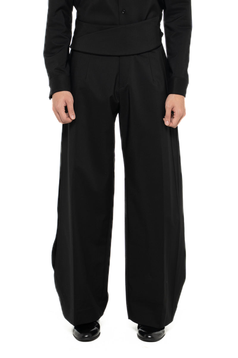 BLACK LOOSE LONG PANTS WITH DETACHABLE PICKED COLLAR BELT