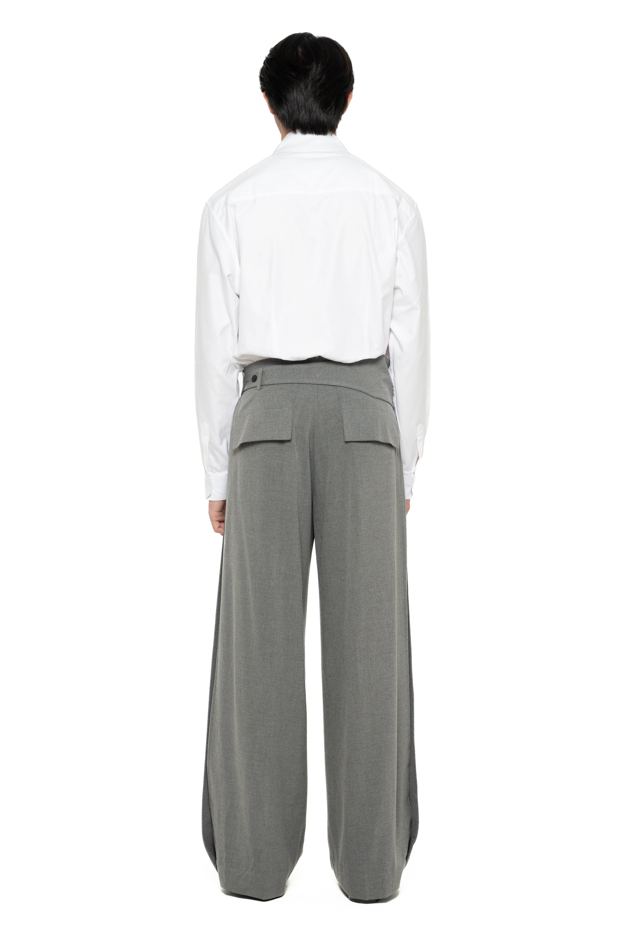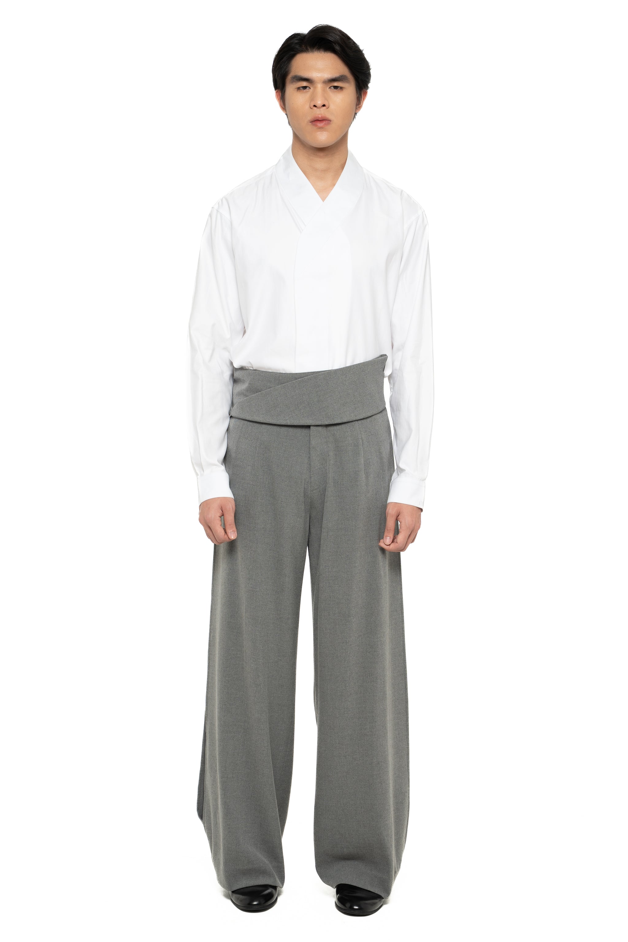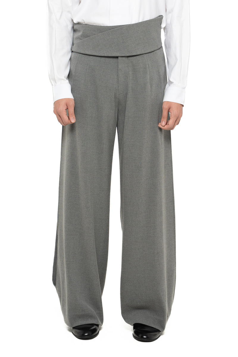GREY LOOSE LONG PANTS WITH DETACHABLE PICKED COLLAR BELT
