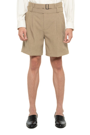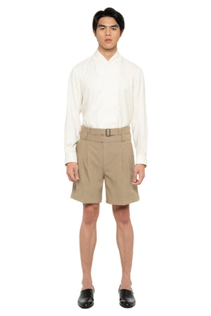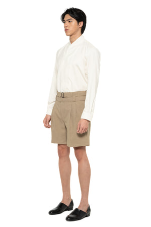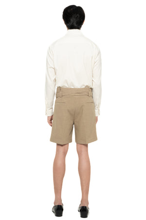 BEIGE DOUBLE WAISTBAND SHORT PANTS