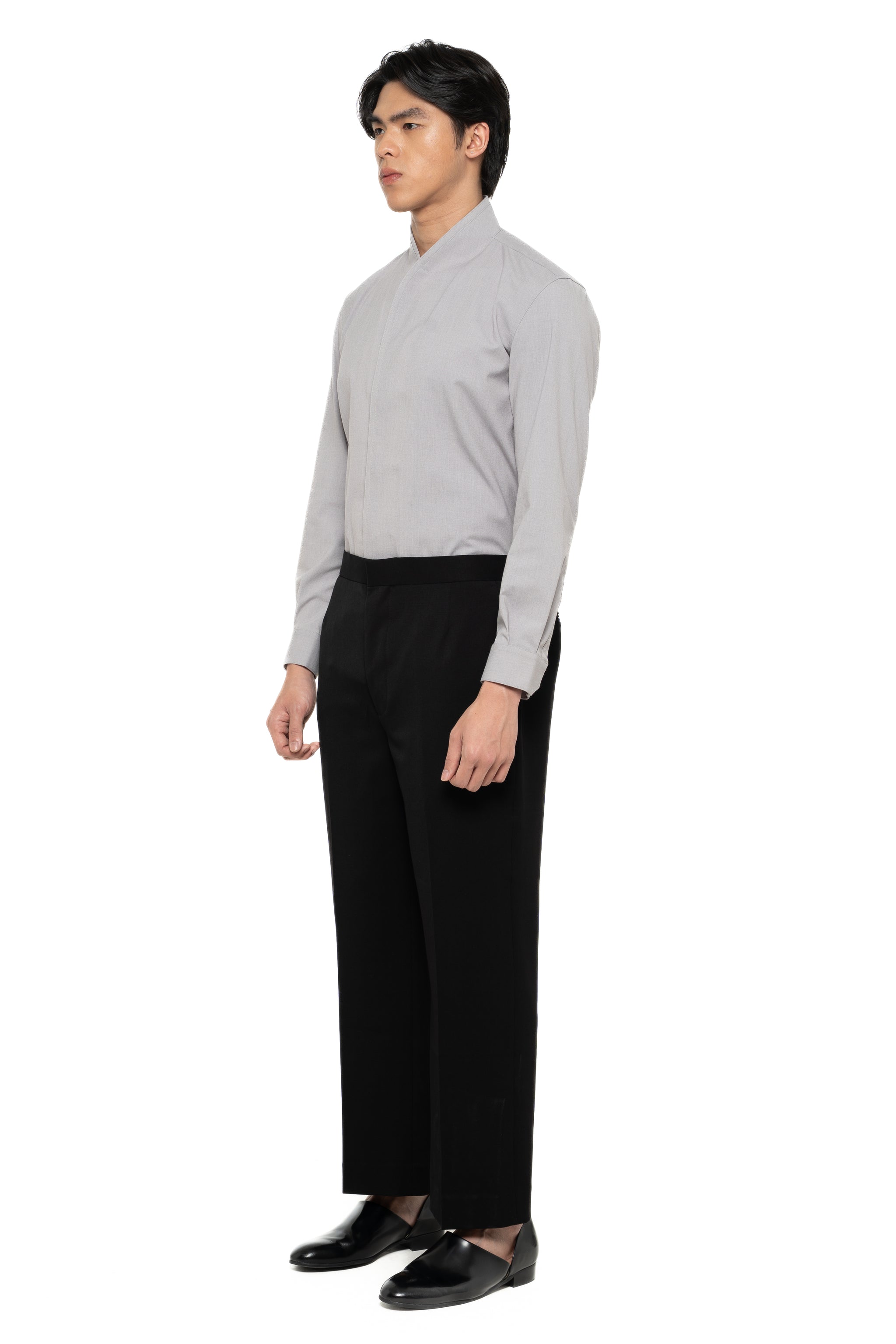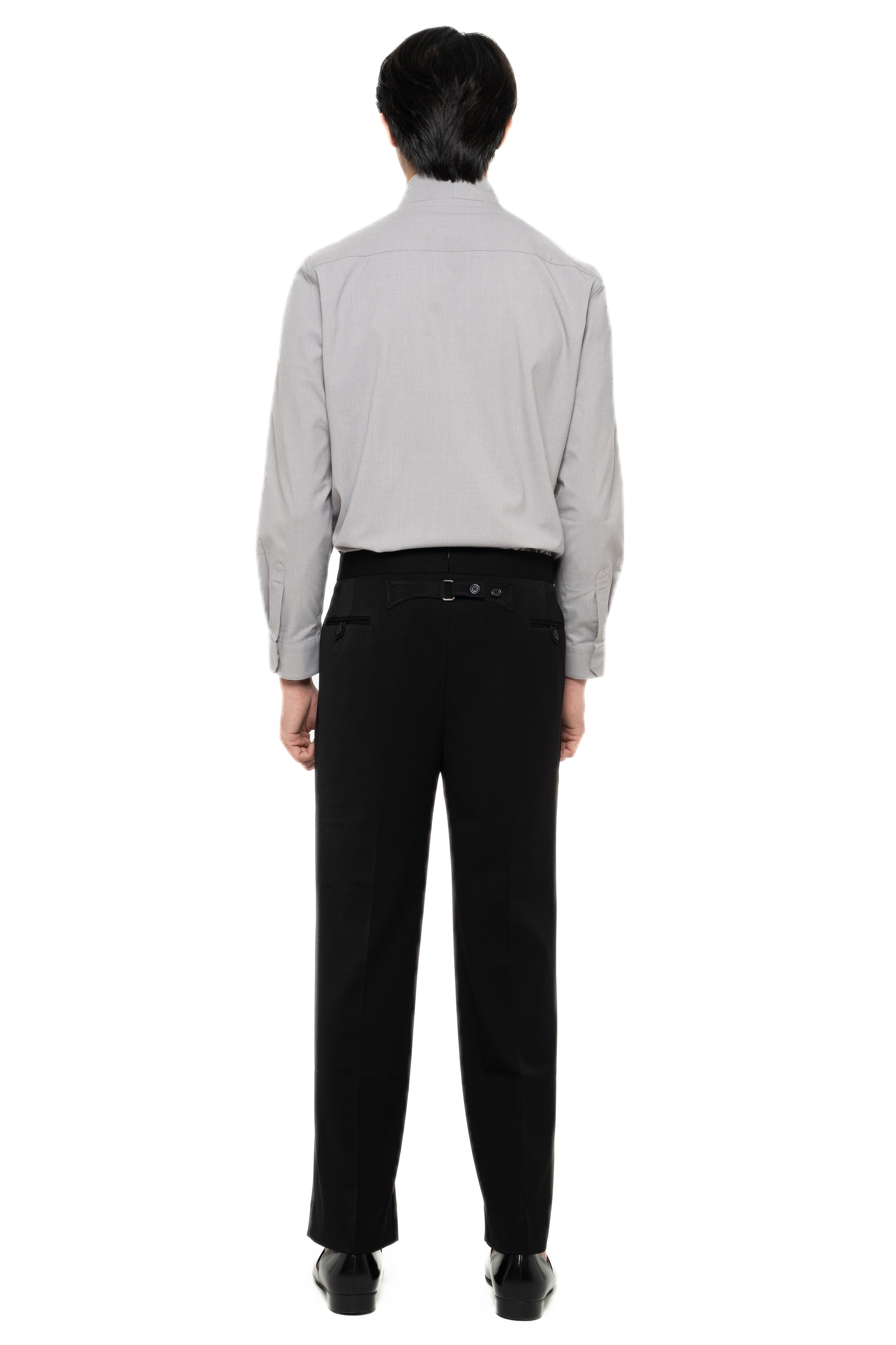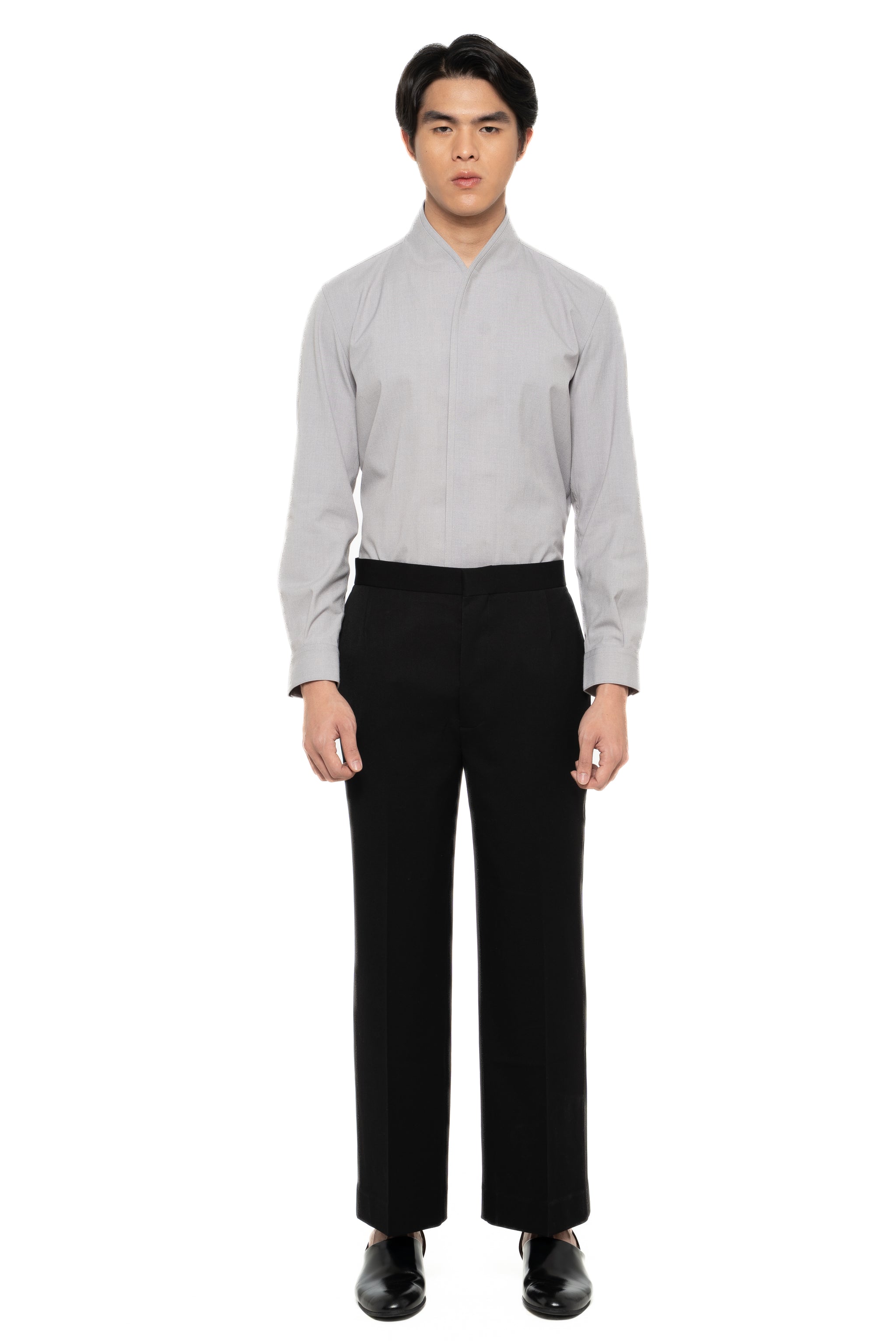 GREY LOOSE LONG PANTS WITH DETACHABLE PICKED COLLAR BELT
