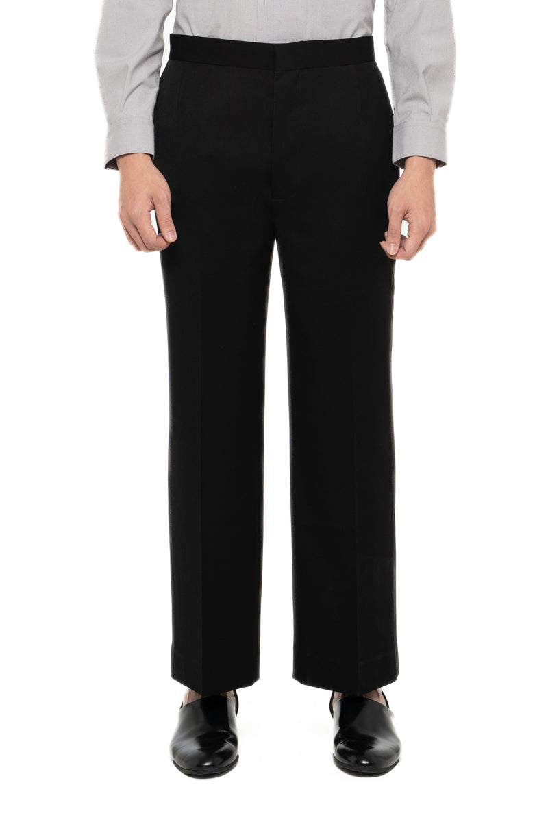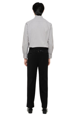 BLACK LOOSE LONG PANTS WITH DETACHABLE PICKED COLLAR BELT