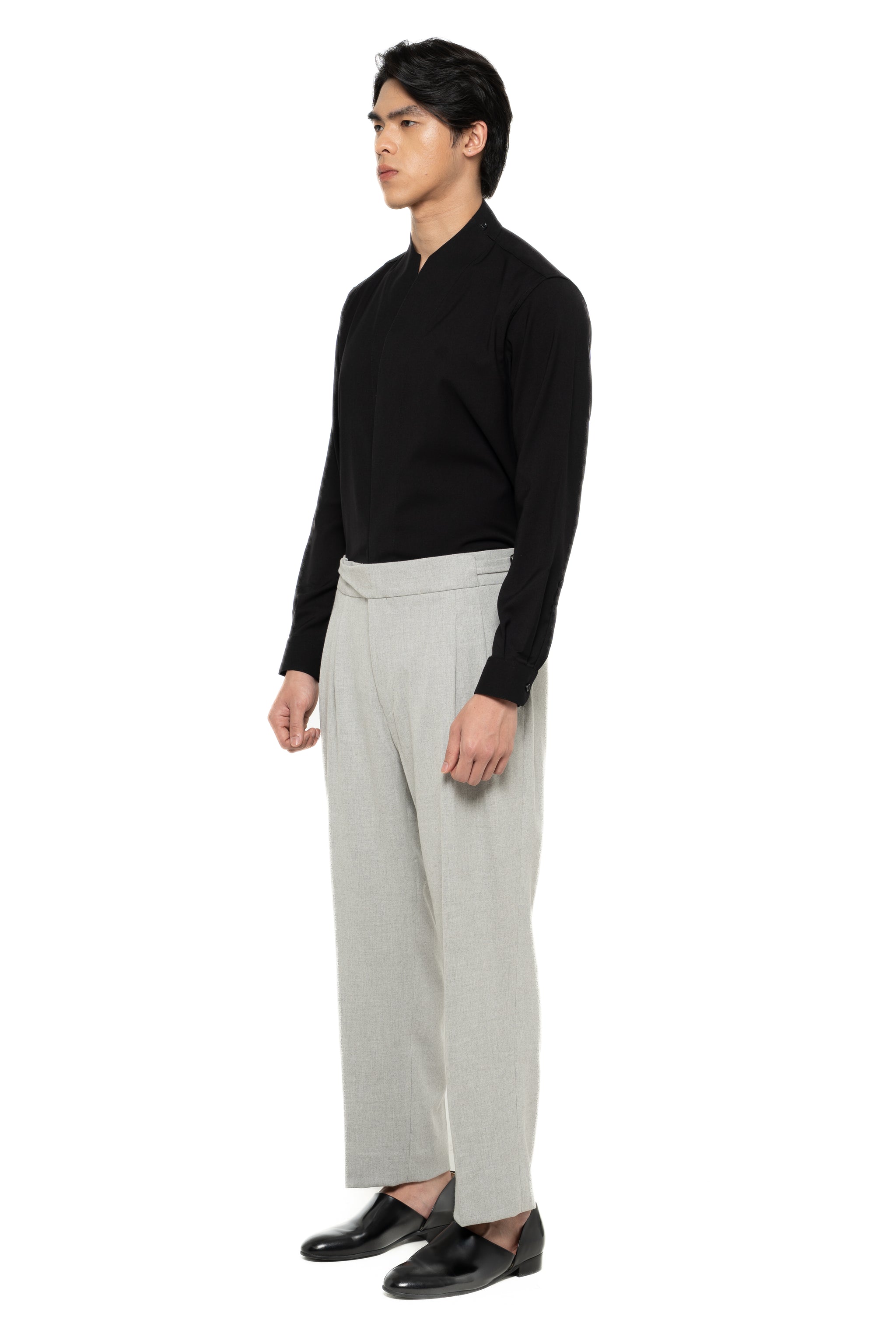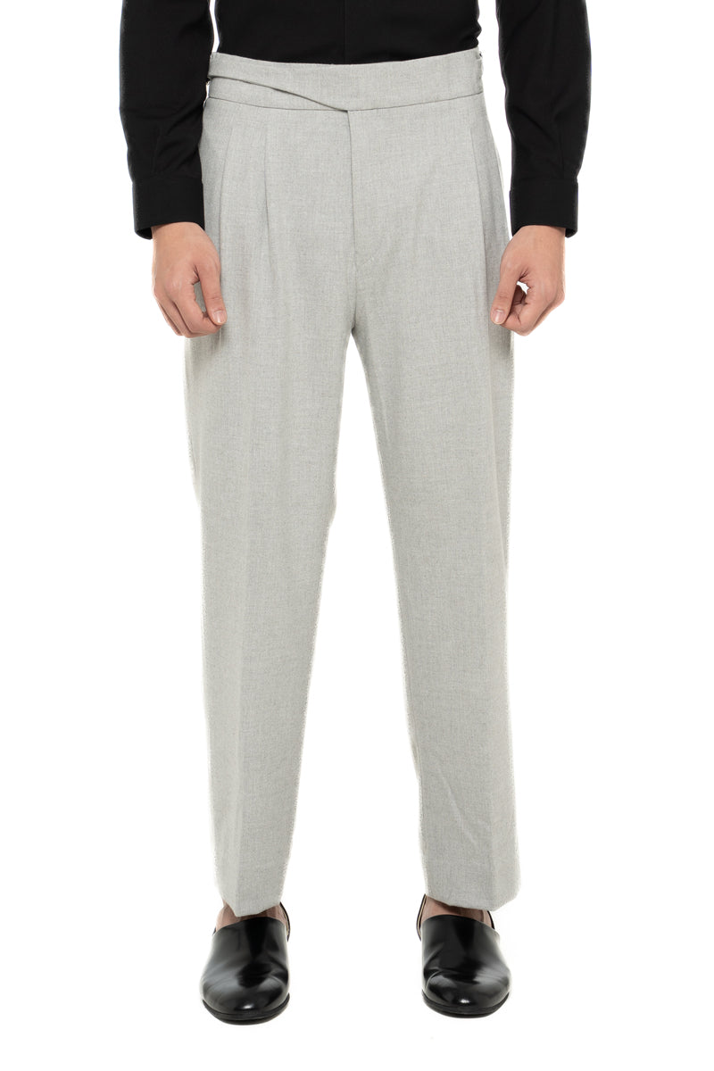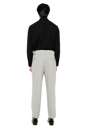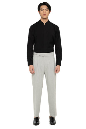 GREY LOOSE LONG PANTS WITH DETACHABLE PICKED COLLAR BELT