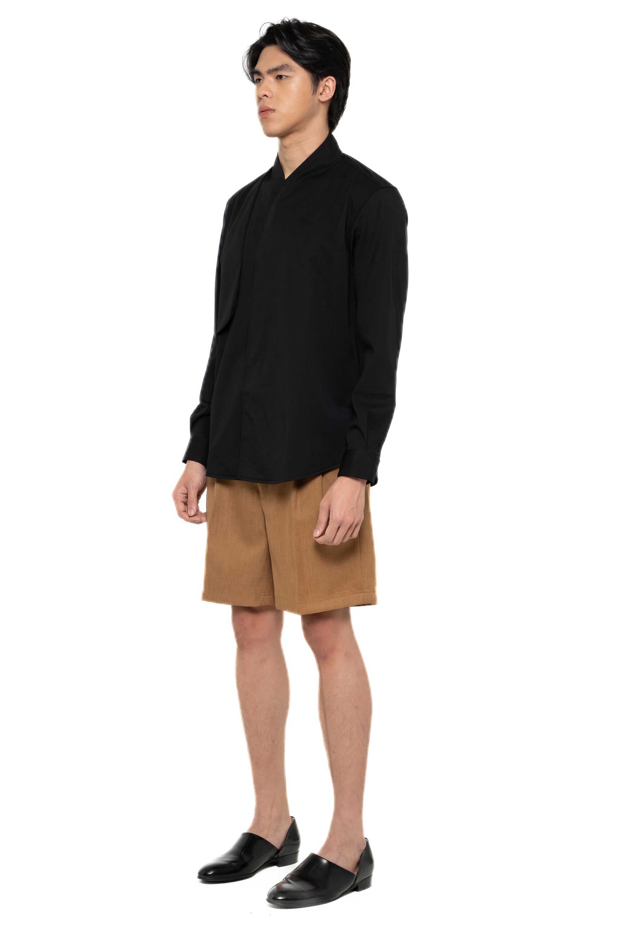 BLACK COLLARLESS WITH DOUBLE PLACKET LONG SLEEVES SHIRT