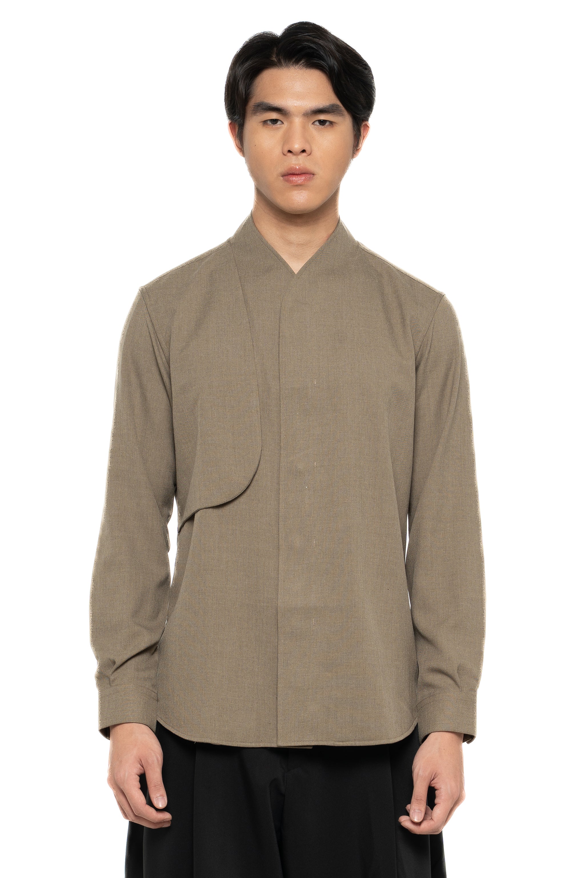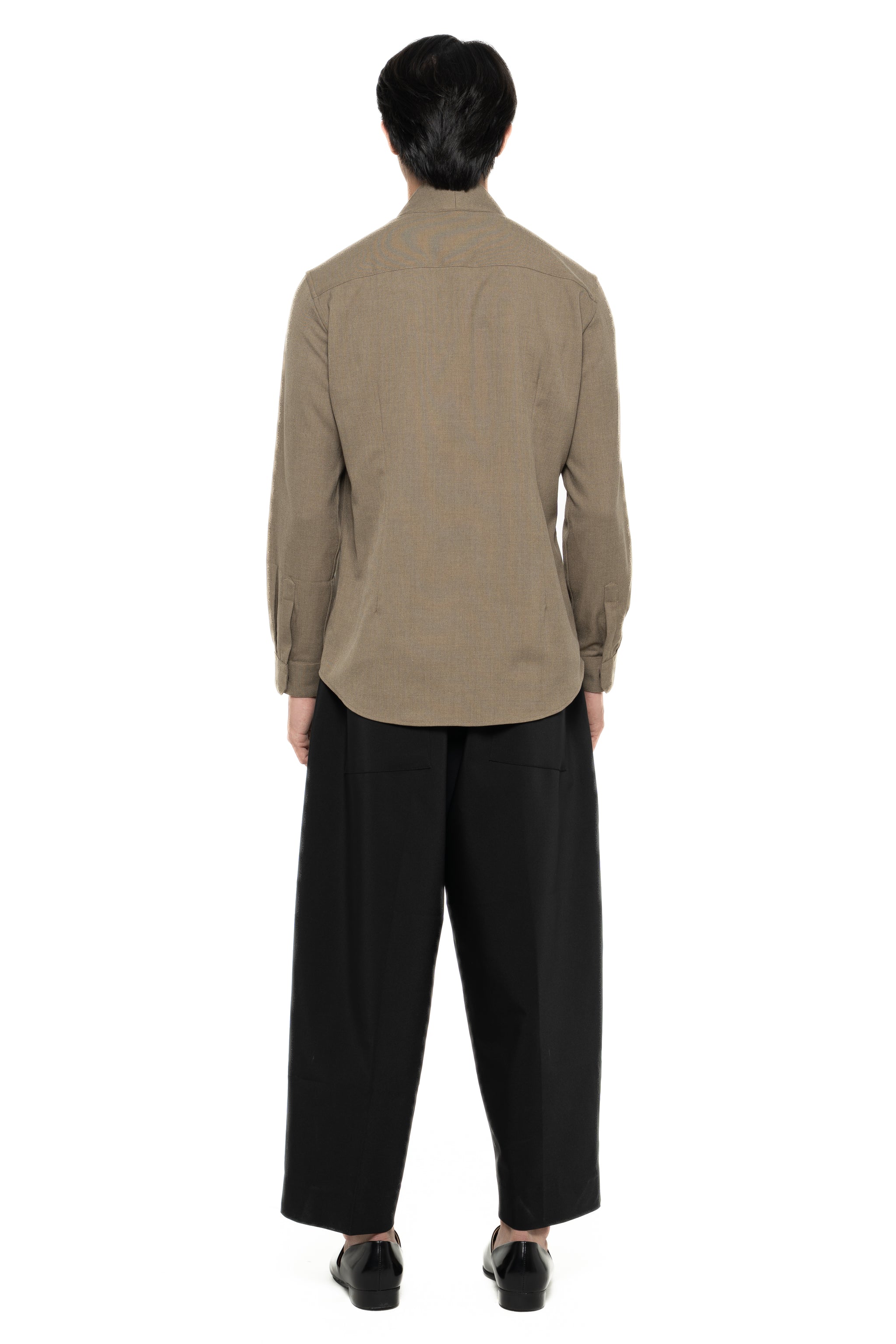 DARK BROWN COLLARLESS PART 5 WITH DOUBLE PLACKET BUTTON LONG SLEEVES SHIRT