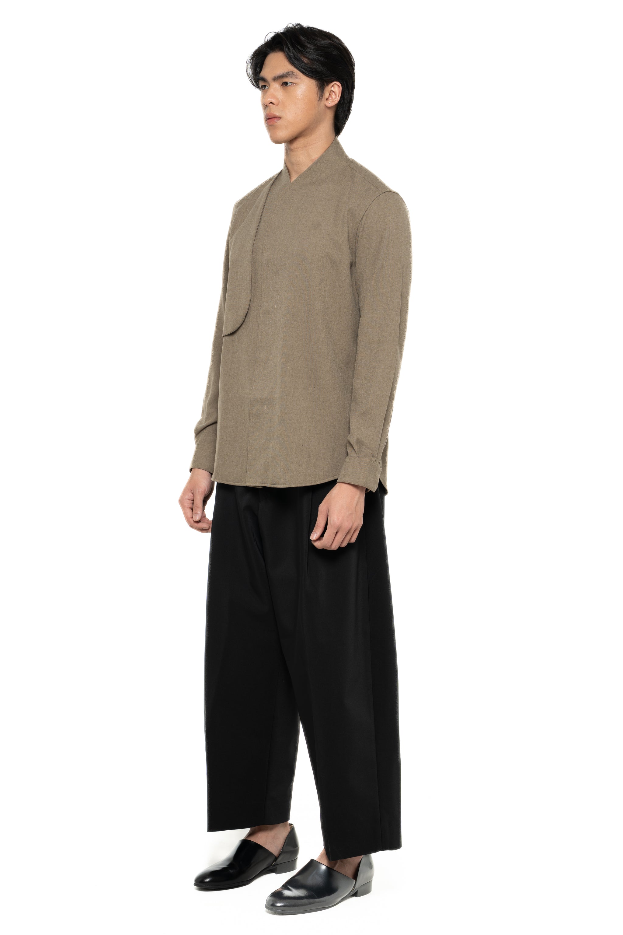 ETOUPE OVERSIZED COLLARLESS PART 1 LONG SLEEVES SHIRT WITH POCKET