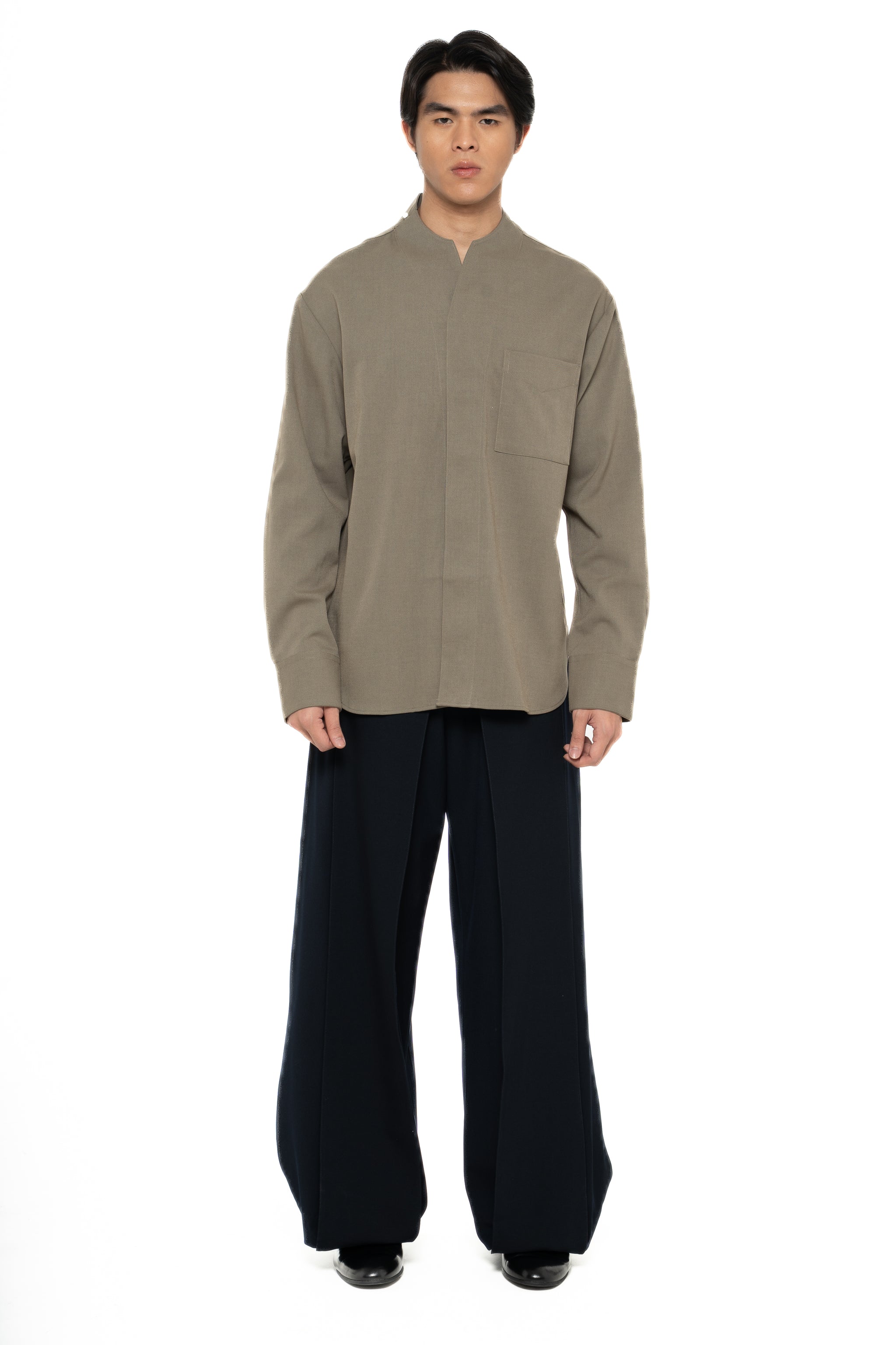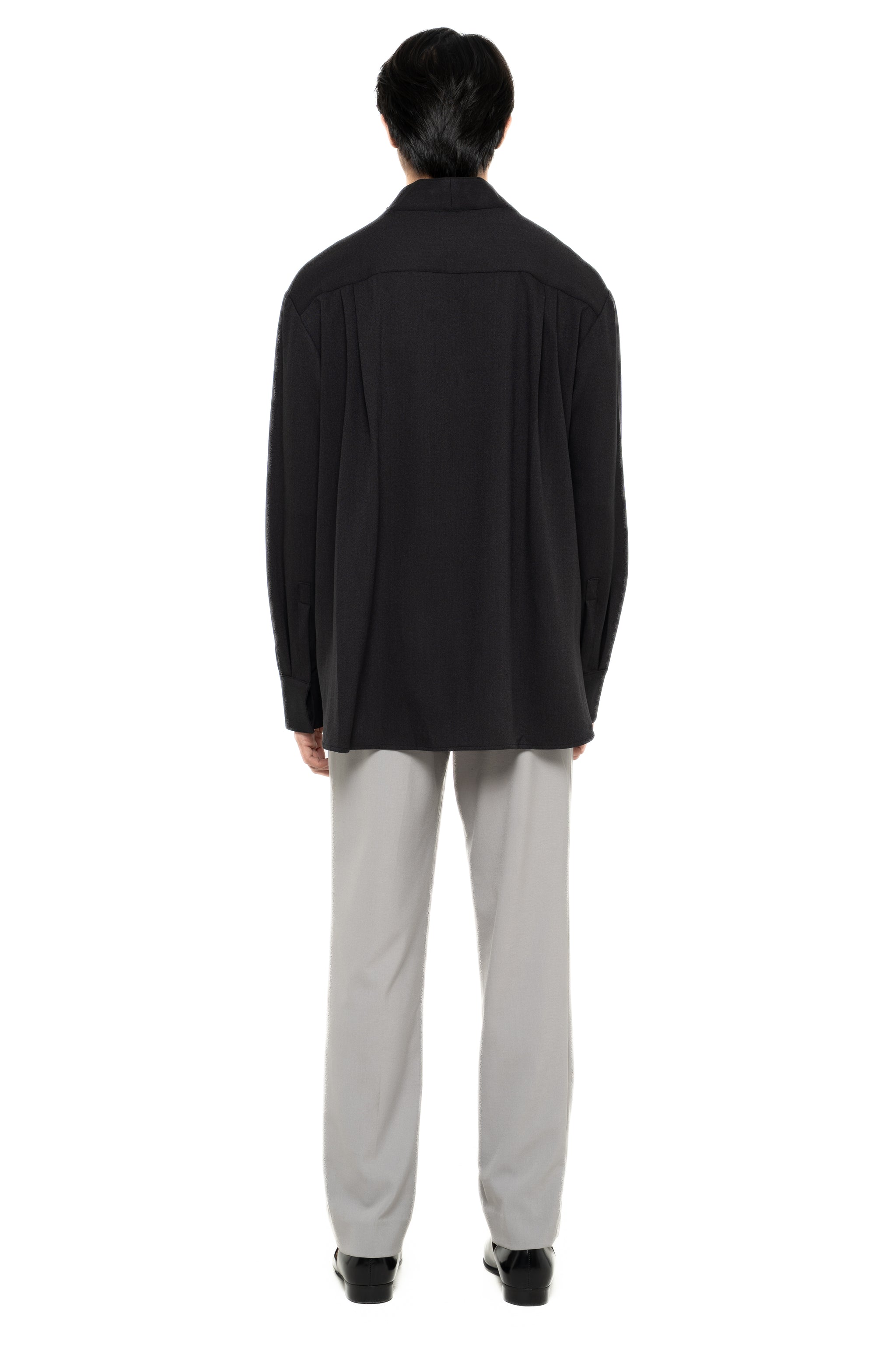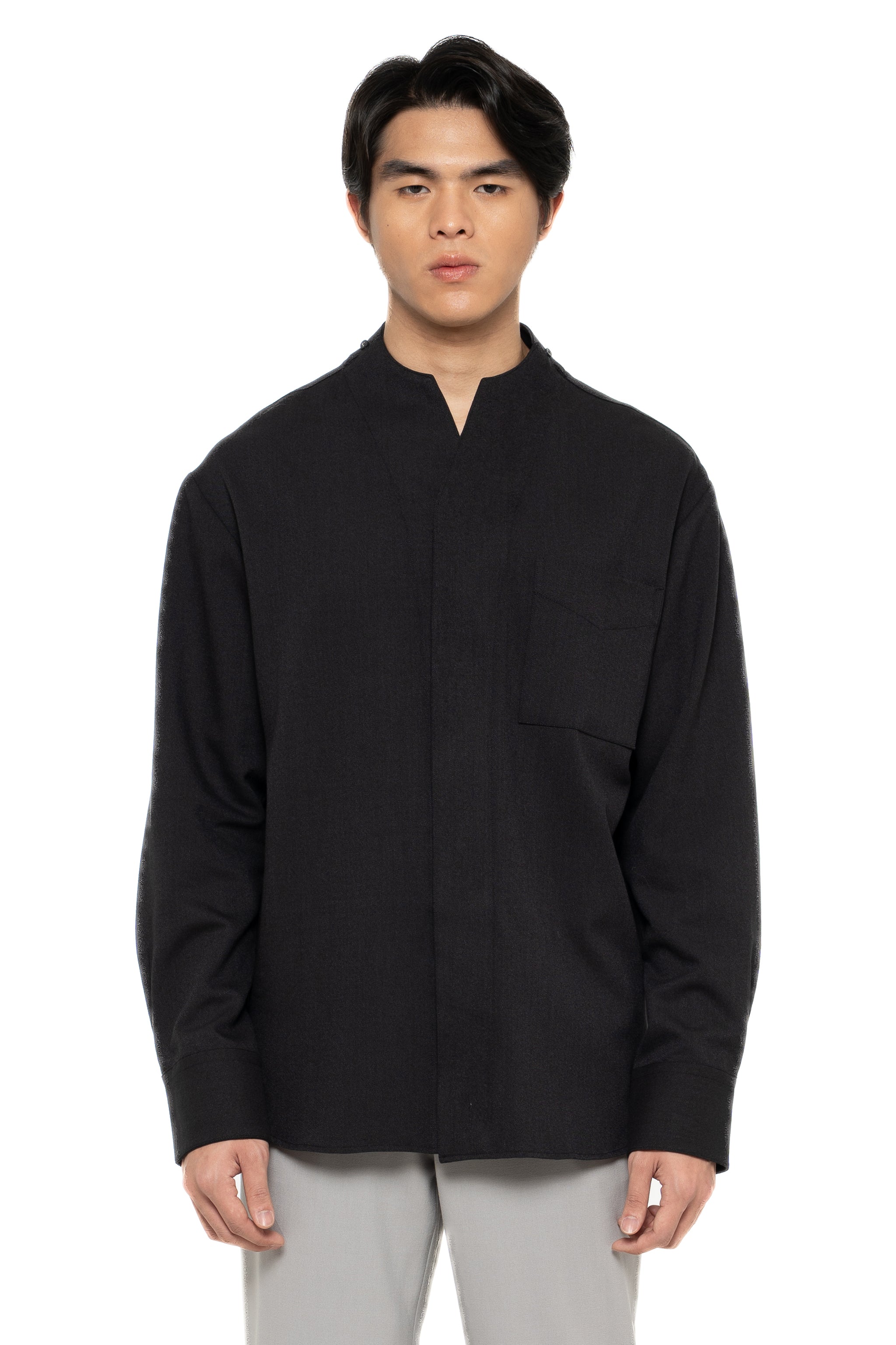 CHARCOAL OVERSIZED COLLARLESS PART 1 LONG SLEEVES SHIRT WITH POCKET