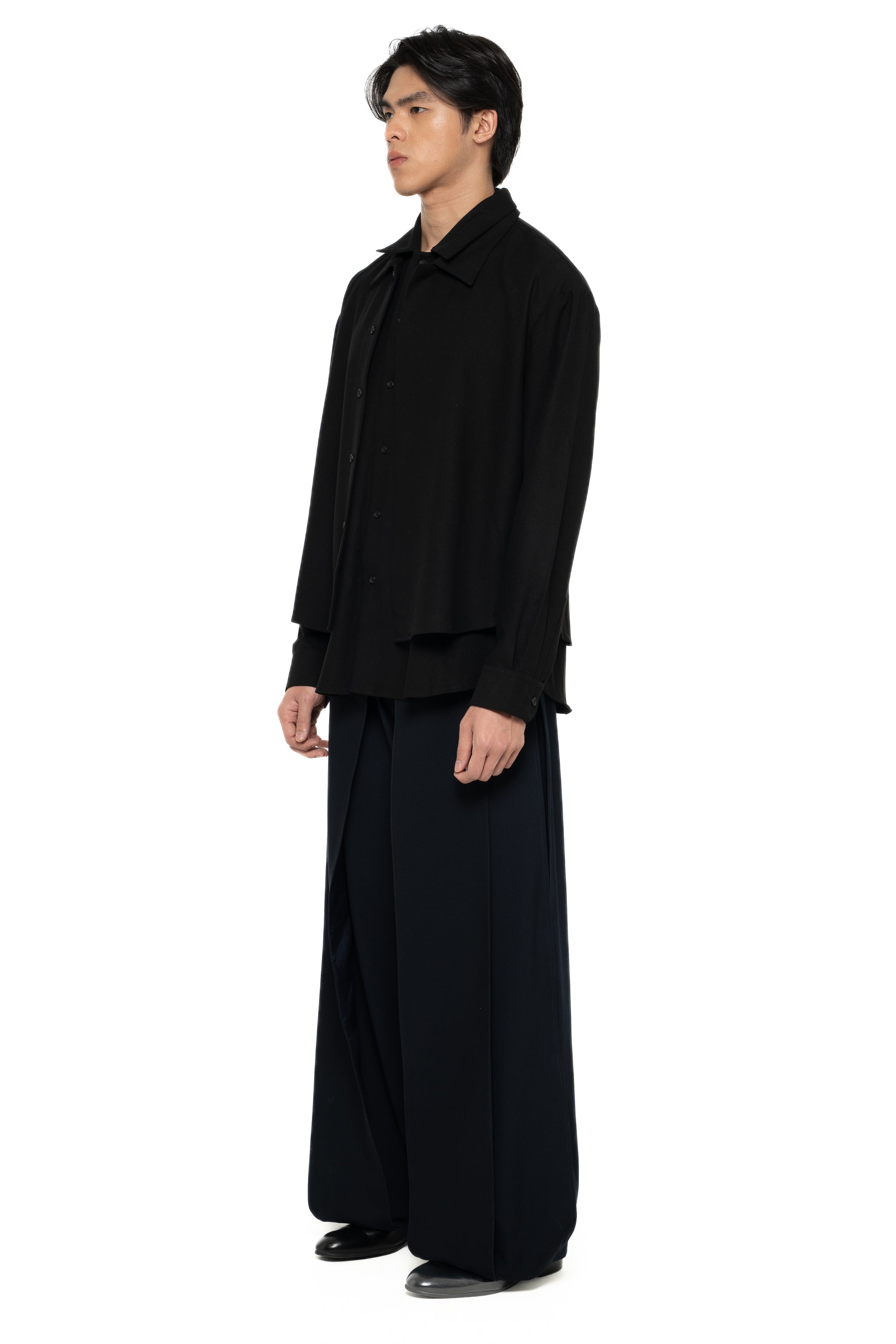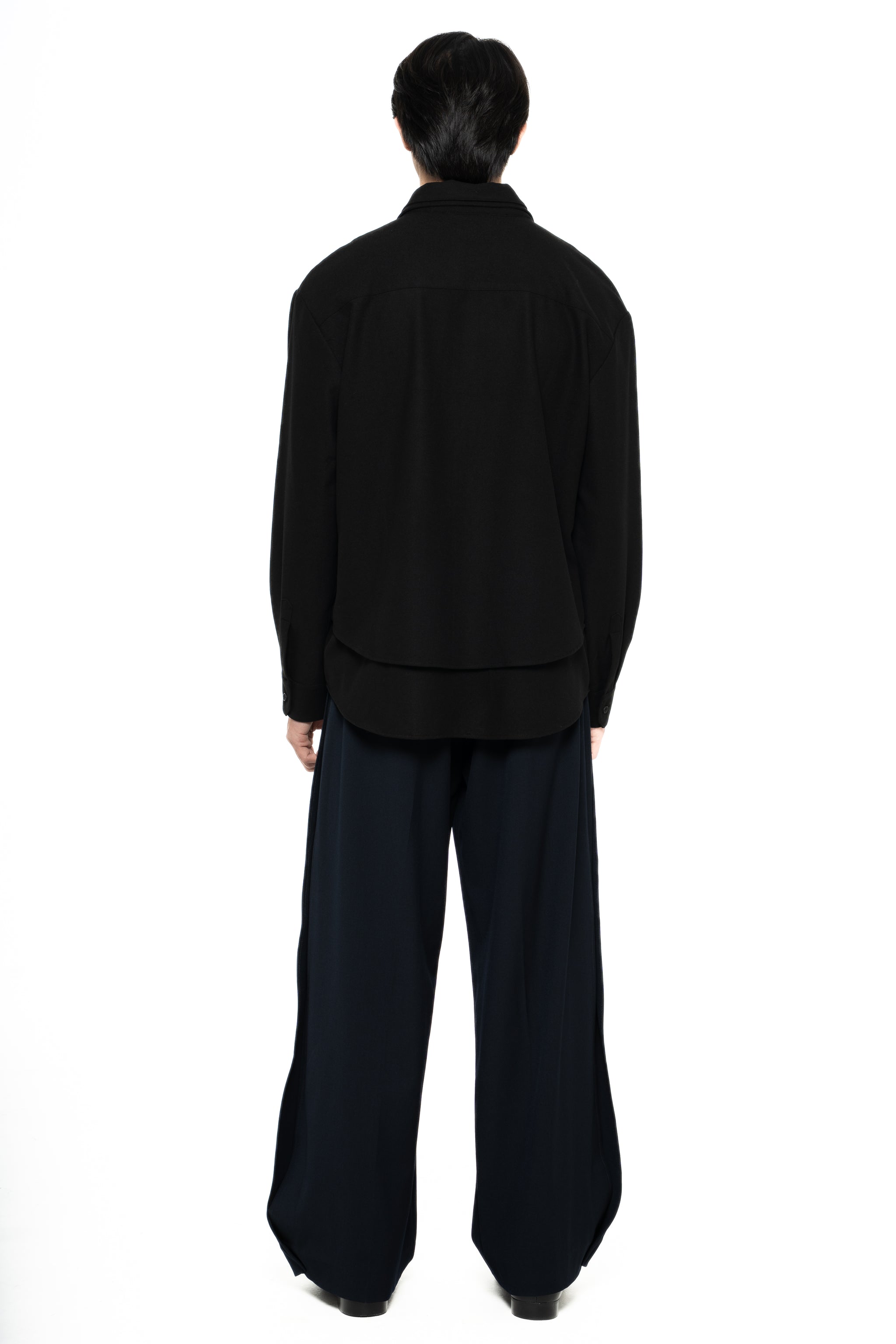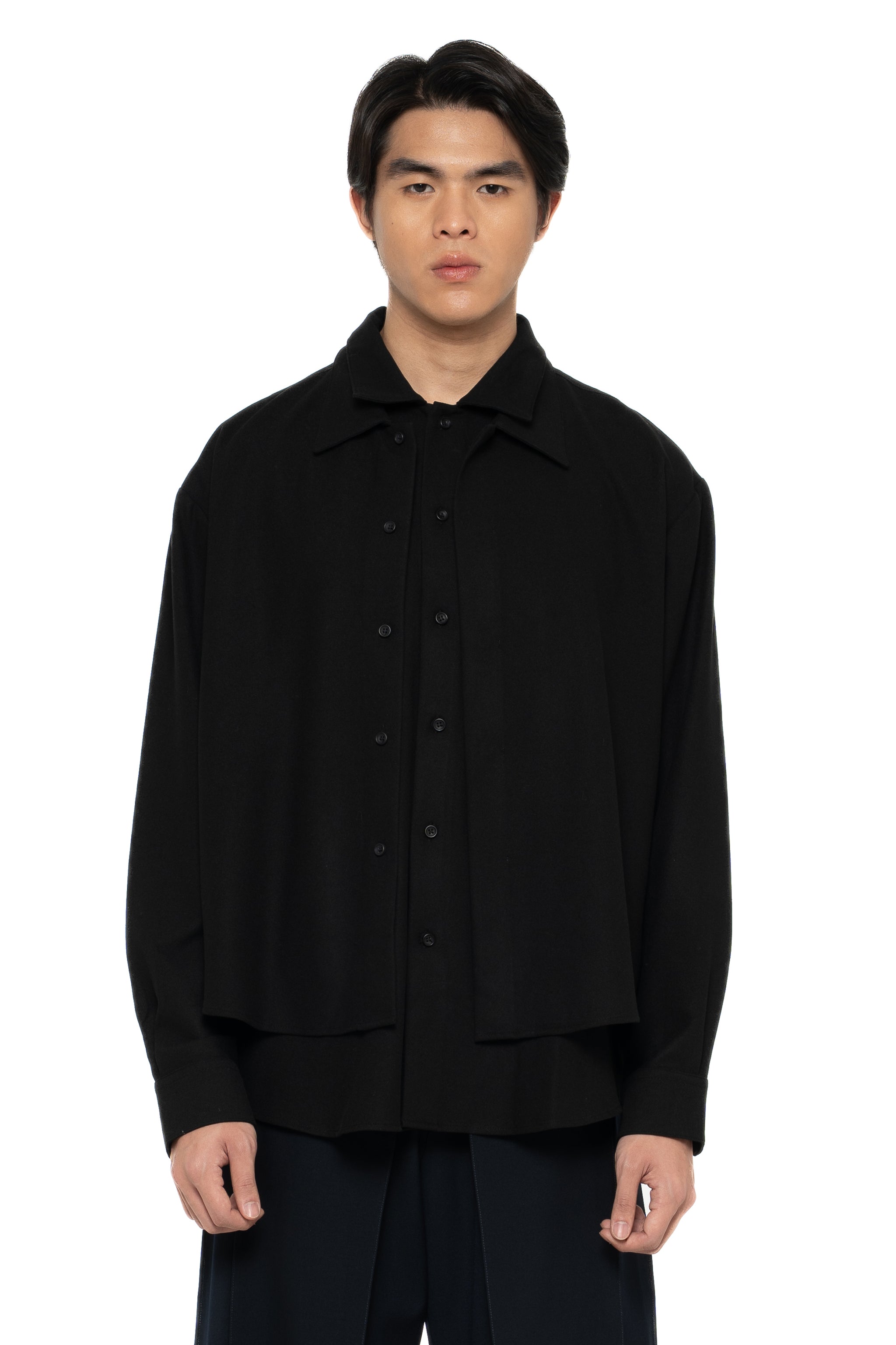 BLACK OVERSIZED COLLAR WITH DOUBLE LAYER SHIRT LONG SLEEVES
